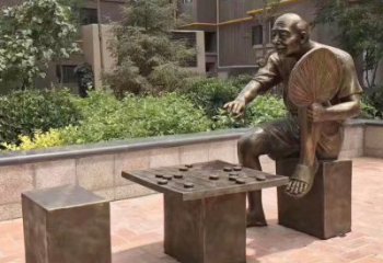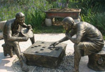 玻璃鋼仿銅戶外公園民俗下象棋雕塑