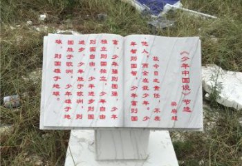 校園大理石石雕書本雕塑是一種具有藝術價值和文化價值的精致工藝品,也是一種珍貴的文物。它有一個漂亮的外觀,有著優雅的線條,不僅是一件藝術作品,而且是一種可以傳承文化的珍貴文物。