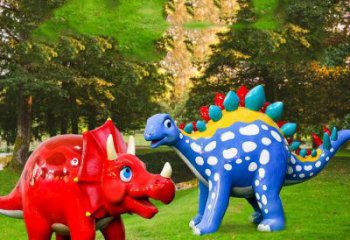 不銹鋼恐龍彩繪雕塑——活力草坪裝置