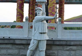 采用銅雕材質,以人物雕塑的形式精準刻畫董存瑞高舉炸藥包的堅毅姿態,細節處如軍裝的褶皺、面部的神情都極具表現力,雕塑底座的巖石質感設計增強了厚重感與力量感,整體形象生動且富有張力,將英雄瞬間的英勇無畏永久定格。作為景觀雕塑,它不僅是一處視覺焦點,更是精神傳承的載體。以銅雕的工藝性與耐久性,保障人物雕塑的藝術價值與紀念意義長存。通過塑造董存瑞這一經典英雄人物形象,將其為民族解放事業犧牲的崇高精神融入景觀之中,使觀者在欣賞雕塑藝術的同時,深刻感受英雄氣概,讓紅色精神在景觀空間中得以持續傳遞,成為弘揚愛國主義、致敬革命先烈的藝術豐碑。
